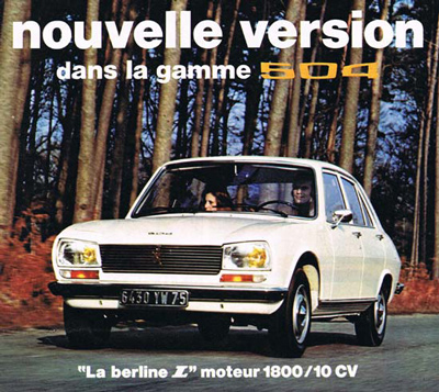 El 504 es, por el contrario, la representación rodante de "cierta imagen del automóvil"; coche clásico si los hay, de líneas incambiadas desde hace más de ocho años, aspecto mastodòntico, pero confort y solidez a toda prueba. Los años han pasado y el 504, sin apenas transformaciones, sigue estando "dans le coup", como demuestra el hecho de haber sido el año pasado el vehículo francés más vendido de la categoría dos litros. Sus diferentes versiones —gasolina y Diesel— tienen idéntica aceptación, con la característica sintomática de que su cotización en el mercado de segunda mano es, proporcionalmente, una de las más altas.