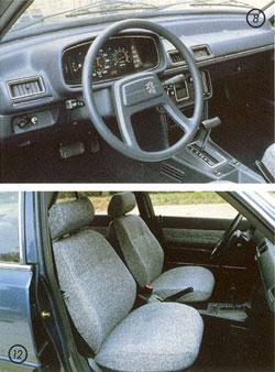 Si hay alguien directamente beneficiado en un coche automático, es el conductor, a quien la tarea se reduce a acelerar, frenar y girar el volante. Pero no por esto los pasajeros disfrutan de menos comodidades en el modelo que protagoniza estas páginas. La totalidad del conjunto está pensada para ofrecer un máximo confort a los ocupantes. Las suspensiones, con reglajes ligeramente sobreviradores, está en el límite de dureza necesaria para un turismo de estas características. Son lo suficientemente blandas como para que los pasajeros no perciban con demasiada veracidad las imperfecciones del trazado y lo suficientemente duras como para asegurar la estabilidad y, además, evitar que la carrocería se balancee, con el perjuicio que ello supone para las personas que en el 505 viajen por zonas sinuosas.