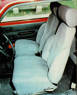 En cuanto a los asientos, digamos que el GLT ha salido ganando con el cambio, pues tanto el asiento en sí (banqueta), como el respaldo son algo más mullidos que antes, si bien la banqueta sigue siendo un tanto corta, y por otra parte, el reposacabezas es notablemente mejor que el antiguo, mucho más mullido. En cambio, el TS no ha tenido tanta suerte; cierto que el reposacabezas es el mismo que el del GTL, y con las ventajas de poder quitarlo si se quiere (cosa imposible en el antiguo, de tipo “momia”), y de ser mullido. Pero, en cambio, la banqueta es más o menos como antes, mientras que el respaldo propiamente dicho ha perdido claramente respecto al anterior, ya que el diseño “petalo”, tomado del R 17 (aunque olvidando la parte de abajo), parece estar pensado para usuarios de 90 kilos para arriba, pues una persona de corpulencia normal oscila con demasiada libertad entre los dos refuerzos laterales. Por otra parte, en sentido vertical, el respaldo es rigurosamente plano, cuando no cóncavo, sin el menor asomo de apoyo lumbar, cosa que sí tenían los anteriores.
