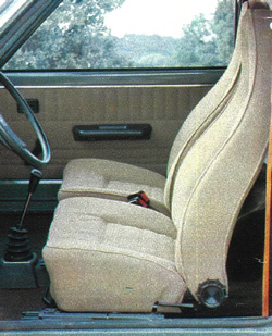 El asiento está ligeramente girado hacia la izquierda, para centrar al conductor con los pedales, debido a la intromisión del motor en la parte central del habitáculo. No es una desviación notable, de la cual sólo se percata uno al advertir que el asiento sujeta mejor en las curvas a izquierdas que en las orientadas al lado contrario. La posición del asiento es bastante elevada y permite un buen dominio de la carretera. El respaldo es excelente, con muy buen diseño, y un soporte lateral que sólo resulta insuficiente cuando se intenta extraer el máximo de posibilidades al coche en una zona virada. La posición relativa que este asiento permite, respecto al volante y la palanca de cambios, es buena; quizá convendría que el cambio tuviera menos recorrido, para que la tercera no quedase ligeramente alejada, como es el caso.