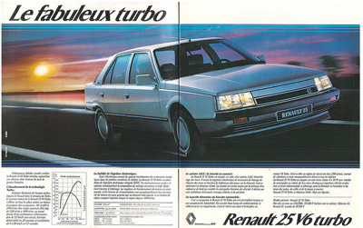 El R 25 V6 Turbo es, junto con el Audi «200» 2.100 Turbo, el tracción delantera más potente del mercado. Con más de 180 CV, se trata de un coche que busca en cierto modo la exclusividad y la máxima expresión de una casa constructora. La Régie no encaminará su política hacia la promoción o abaratamiento de tan sofisticado producto, sobre todo después de los problemas financieros que ha atravesado la marca gala y los inmediatos planes de potenciar gamas pequeñas y medias para salir del bache.