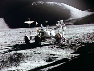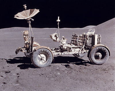 La vieja teoría de fuertes tormentas de polvo en la Luna ya había sido refutada, mucho antes de que el primer hombre pusiera el pie en ella; pero, su superficie es indudablemente áspera. Nadie ha mejorado la descripción de Edwin Aldrin de “impresionante desolación”. Los Rover estaban diseñados para superar obstáculos de hasta 30 cm , y para cruzar grietas de 76 cm ; los amortiguadores del vehículo lunar tenían que trabajar más que los de un coche terrestre porque existe allí menos gravedad que lo mantenga pegado a la superficie. Además, se calentaban muchísimo debido a la falta de aire refrigerador. Se emplearon aceites especiales de silicona para soportar las extremas temperaturas.