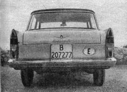 MOTOR Modelo, AB; número de cilindros, 4; diámetro y carrera de los pistones, 82 X 66 mm.; cilindrada total, 1.395 centímetros cúbicos; relación de compresión, 7,5; potencia máxima efectiva (a 4.600 r.p.m.) en aire tipo, 58 CV; potencia fiscal (España) 10 CV; bloque de hierro fundido. Camisas de fundición especial. Culata de aluminio. Cigüeñal sostenido por tres soportes de bancada. Bielas de acero. Pistones de aleación de aluminio. DISTRIBUCIÓN Válvulas en cabeza accionadas mediante empujadores y balancines por el árbol de distribución colocado en el bloque y accionado a su vez por cadena. Datos de la distribución: Admisión: comienzo, antes del p.m.s., 15º; fin, después del p.m.i., 55º. Escape: comienzo, antes del p.m.i., 48º; fin, después del p.m.a., 10º. Juego de funcionamiento entre válvulas y balancines con motor frío; admisión y escape, 0,15 mm. ALIMENTACIÓN Depósito de gasolina situado debajo de la maleta, con filtro de aspiración e indicador eléctrico de nivel. Bomba de membrana, accionada por el árbol de distribución. Carburador Weber, de aspiración invertida, de doble cuerpo, tipo 36DADI, con funcionamiento sincronizado de la apertura de las dos mariposas y de la bomba de aceleración. Dotado de dispositivo de "starter" automático con toma de aire exterior calentado a través del colector de escape. DATOS DE REGULACIÓN DEL CARBURADOR WEBER Diámetro del difusor: primer cuerpo, 21 mm., segundo cuerpo: 23 mm. Diámetro del surtidor principal: primer cuerpo, 1,10 mm; segundo cuerpo, 1,15 mm. Diámetro del surtidor de mínimo ("ralentí"): primer cuerpo, 0,50 mm. Diámetro del surtidor aire principal: primer cuer-() 1,25 mm. Diámetro del surtidor de la bomba de aceleración: primer cuerpo, 0,50 mm. Diámetro del surtidor de arranque: primer cuerpo, po, 2,10 mm; segundo cuerpo, 2,30 mm. LUBRIFICACIÓN Se realiza por circuito a presión con bomba de engranajes accionada por el árbol de distribución Filtro de aceite con cartucho filtrante, en derivación con el circuito principal. Presión normal de lubrificación 25/30 metros de columna de agua. REFRIGERACIÓN Realizada por circulación de agua, activado por bomba centrífuga. Termostato en el conducto que va de los cilindros al radiador. ENCENDIDO Mediante batería con distribuidor accionado por el árbol de distribución. Conmutador de encendido y puesta en marcha, situado en el tablero de instrumentos y accionado mediante llave adecuada. Orden del encendido, 1-3-4-2; avance inicial, 0º; avance automático del distribuidor, 38º; fuego entre los contactos del ruptor, 0,42/0,48 milímetros. Bujías de grado térmico 225. Diámetro y paso de rosca, 14 X 1,25 mm; distancia entre los elementos de las bujías, 0,50/0,60 milímetros. TRANSMISIÓN EMBRAGUE Monodisco con acoplamiento elástico funcionando en seco y mando hidráulico. Carrera del pedal en vacío, 16/20 mm. CAMBIO DE VELOCIDADES De cuatro velocidades y marcha atrás, con II y III silenciosa y dispositivos sincronizadores para acoplamiento rápido de la II, III y IV velocidades. Palanca de accionamiento del cambio de velocidades bajo el volante de dirección. RELACIONES DE LOS ENGRANAJES En I velocidad, 1:3,86; en II velocidad, 1:2,38; en III velocidad, 1:1,57; en IV velocidad, 1:1; en marcha atrás, 1:3,86. · AUTOPISTA nº 10 (26-2-62) · Gracias a jmr por enviar el reportaje