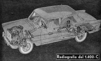 La dirección es precisa y suave no transmitiéndose ninguna vibración al volante. El sistema de mando por tornillo sin fin y rodillo sobre rodamientos de rodillos proporcionan gran manejabilidad, especialmente en el tránsito urbano, donde la agilidad de conducción es notable. La eficacia de los frenos también nos sorprendió; el acoplamiento de un cilindro sobrepresor en las zapatas delanteras aumenta la frenada sobre estas ruedas. Buenas cualidades ruteras y de subida las del 1.400-C. Un coche que se merece la justicia del elogio, porque en su fabricación no se escatiman controles y cuidados. Ya sólo precisa la atención cariñosa e inteligente del usuario.