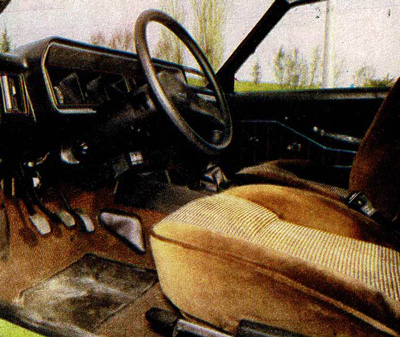 El nuevo volante también se destaca inmediatamente, puesto que su diseño, con dos anchos brazos formando una V invertida, es muy diferente del anterior. Se trata del volante que Fiat ha lanzado con la versión 2000 del 132, que aparecerá en Seat dentro de no mucho tiempo (las variaciones de carrocería, no el motor de 2 litros). Por supuesto, la columna de dirección sigue siendo regulable en altura, y el volante en sí es de material elástico; como en todos los de este tipo, la incógnita reside en saber cuánto tiempo necesitará para pulirse y ponerse brillante y resbaladizo.