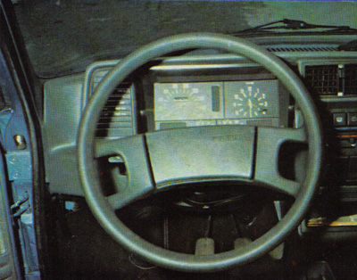 Lo mismo que en su aspecto externo se ha propiciado un cambio sustancial, ocurre con el interior, donde todo lo que vemos es completamente nuevo, anticipando que los materiales empleados son de una calidad muy apreciable. El puesto del conductor se ha cuidado al máximo, y así se cuenta con un salpicadero realmente excepcional, tanto por su diseño como por el excelente material plástico que adopta. La posición es muy relajada y los instrumentos quedan muy a la vista los que hay que consultar y muy a la mano los que hay que accionar. El volante tiene muy buen tacto y permite ver bien el velocímetro a la izquierda y el cuentakilómetros, o a la derecha, el reloj horario, quedando en el centro, los indicadores de presión del aceite, de temperatura de agua, carga del alternador y nivel de combustible con piloto de reserva. Los indicadores de las luces de dirección, posición, warning y luces de carretera, están agrupados a la derecha, mientras que los interruptores de luces exteriores y de la iluminación del cuadro de instrumentos, así como el mando del lavacristales, están en la parte izquierda del tablero.