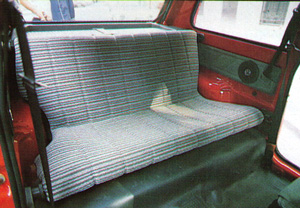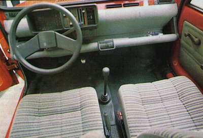 Después de superar esta impresión a base de decirme que el coche necesariamente tenía que ser así porque era muy barato, etc., llama la atención lo funcional que resulta lo poco que hay. Desde la bolsa que recorre todo el salpicadero y hace las veces de guantera (ya que ésta, en sentido estricto, no existe), hasta lo a mano que queda el retrovisor exterior, o el manubrio de la ventanilla, pasando por un comodísimo cenicero, que incluso se puede (se debe, ya que no hay otro) compartir con los pasajeros que van detrás. El Marbella es, en su parquedad, un coche muy bien resuelto. Hasta cierto punto, la imagen de «simpatía» que algunos ven en el Marbella se ve reforzada por la ausencia de casi todo. Es un «cochecillo» en todo lo concreto que puede llegar a ser una expresión tan vaga y tiene lo imprescindible para quienes sólo quieran un coche para lo imprescindible: abandonar el transporte público con el menor desembolso posible.