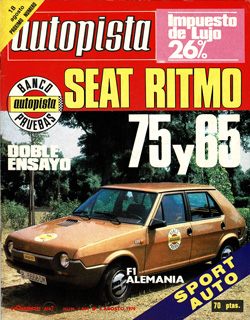 La segunda conclusión es que, como en el 128, el estado de la amortiguación es, ya que no determinante, al menos si de una gran influencia. Son ya cuatro los Ritmo que han pasado por nuestras manos, la que menos, durante varios cientos de kilómetros, y los que más, durante varios miles. Tres de ellos (el modelo italiano probado el año pasado, el Ritmo 75 de la presentación en viaje a Turín, y el 65 cuyos datos ofrecemos hoy en conjunción con los de otros 75) estaban en perfectas condiciones, no más de 3000 km en el contador, sin haber pasado previamente por más manos que las de los probadores de la casa. En cambio, el cuarto coche, el 75 de esta prueba, acusaba ya muy cerca de los 7000 km cuando lo recibimos. Tenía a cuestas el mencionado viaje a Turín, más un número indeterminado de turnos de presentación posterior por las carreteras de Ibiza, pasando por las más diversas manos.