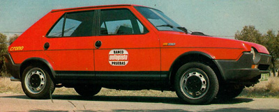 Todos los elementos elásticos y de control (resortes y amortiguadores) son más duros que en el Ritmo, y el asentamiento del coche, en origen, queda un poco más bajo. También se modifican ligeramente las cotas del tren delantero, eliminando la caída positiva y aumentando ligeramente el radio de pivotamiento, para buscar un efecto autocentrante más acusado. Recordemos que las llantas, como en el CLX, son nada menos que de 5,5 x 14”, muy generosas, calzadas con las gomas especiales anti-consumo de Pirelli, las P-8 en medida 165/65-14.