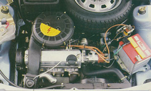 Sobre el diseño del motor «system Porsche» ya hemos informado en las últimas semanas lo suficiente como para que nuestros lectores se lo conozcan casi de memoria. Es, sobre el papel y en la realidad, el motor de gran serie más moderno que hoy en día funciona por Europa. Y el rendimiento real está en perfecta consonancia con las excelencias técnicas y teóricas. Tanto en potencia como en consumo, los efectos de la compresión de 10,5:1 se dejan sentir, así como los beneficios de un buen árbol de levas, unas cámaras de alto rendimiento y una «respiración» que autoriza a subir, y con fuerza, bien por encima de las 6.300 rpm. que son el limite oficial. En el banco «estiramos» hasta casi las 6.800 rpm., y seguía habiendo potencia interesante, pero creemos que las 6.500 son un límite intermedio más razonable, si bien está claro que el potencial del motor no se agota, ni con mucho, en los actuales 90 cv.