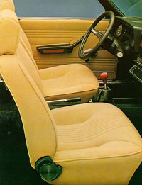 Interiormente se observa que los asientos delanteros van equipados con una especie de reposacabezas, graduable en altura mediante una pequeña ruedecita situada en un lateral de cada asiento. Este elemento de seguridad es sumamente eficaz cuando el vehículo sufre un golpe por la parte trasera, ya que evita un excesivo desplazamiento de la cabeza hacia la parte posterior, evitando el desnuque.