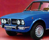 La anterior es de ruedas independientes, con cuadriláteros transversales. El muelle de suspensión clásico de Alfa ha sido sustituido por una barra de torsión. El trapecio superior lleva un tirante de reacción fijado a la carrocería. Ambas suspensiones delanteras van unidas por medio de una barra estabilizadora para disminuir el balanceo del automóvil en las curvas.
