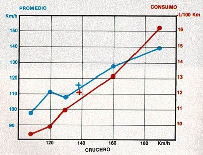 Otra consecuencia del desarrollo corto es que los consumos salen altos, creciendo no sólo más rápido que los promedios conseguidos, lo cual es normal, sino incluso casi más que linealmente respecto al crucero que se intenta mantener. Pero esto es de una relativa importancia en un coche que ya cuesta más de 3,5 millones, sin opciones; curiosamente, con todas las opciones menos el techo (como nuestra unidad de pruebas), este coche cuesta lo mismo que un Audi 80 2.8 sin ninguna opción, que es precisamente la otra berlina europea equivalente por tamaño, potencia y motorización.