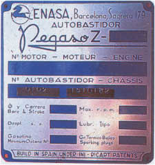 la chapa de identificación del coche, este Pegaso nunca llegó a tener
