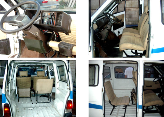 Las banquetas delanteras son las originales, con unos suplementos en las guías. Los asientos traseros son unos transpontines creados a propósito para esta creación. El interior carece de guarnecidos, menos en la zona delantera que se encuentra enmoquetada. Todo el interior recibe un tratamiento de antigravilla, al igual que el hueco motor.