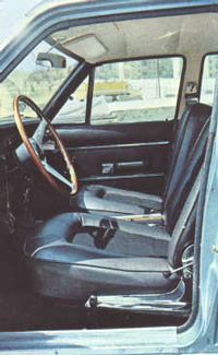 Los asientos delanteros son reclinables, hasta llegar a encontrar el mismo nivel de los traseros, constituyendo entonces, dentro de las limitaciones, propias del caso, una cómoda cama. Sobre un panel de mandos o salpicadero construido en imitación a madera, se encuentran situados el cuentakilómetros, velocímetro, tacómetro, termómetro de agua, manómetro de aceite, amperímetro y el indicador del nivel de esencia. Un reloj eléctrico completa los instrumentos de este modelo.