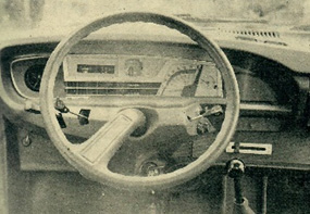 El resto de los mandos quedan perfectamente situados. Mediante tres palancas situadas bajo el volante se controlan la totalidad de los elementos necesarios en la conducción: limpia y lavaparabrisas, intermitentes, bocina y ráfagas y todas las posiciones de las luces. La intensidad de iluminación del curioso velocímetro es regulable, y también la del resto del cuadro de noche. Las viseras están acolchadas y son orientables lateralmente, y tan solo los reflejos del cristal que cubre el cuadro de instrumentos, en ciertas circunstancias de iluminación solar, pueden considerarse como un factor negativo.